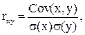 Отметим, что при подстановке в (1.4) выражений для расчета ковариации и СКО m сокращается, и формула принимает вид (1.5):