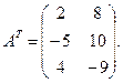 Очевидно, матрица разметом транспонируется в матрицу размером , а элементы транспонируемой и транспонированной матриц находятся в соотношении:
