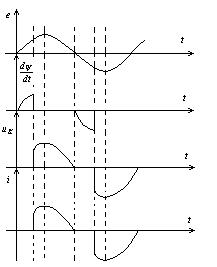 1) t=t1 – диод открывается => 2) t=t2 – диод запирается => i=0