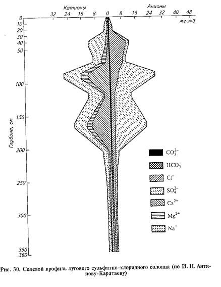 Задание для самостоятельной работы. Используя данные таблицы 58, выполнить следующие задания. 1. Построить солевой профиль и классифицировать почву по глубине залегания солевого максимума. 2. Определить степень засоления почвы по суммарному эффекту токсичных ионов и оценить ее солевой режим. Вопросы и задания для проверки знаний 1. Что представляет собой почвенный раствор? 2. Расскажите о происхождении и свойствах почвенного раствора. 3. Каковы особенности почвенных растворов почв различных зон? 4. С чем связано негативное влияние почвенного раствора на сельскохозяйственные культуры? 5. В чем особенности динамики почвенного раствора? 6. Перечислите методы, используемые для выделения почвенного раствора. 7. Какую роль играет почвенный раствор в развитии почвенных процессов и плодородия?