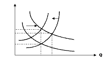 Возможна ситуация одновременного изменения спроса и предложения (рис. 5.19). Например, установилась жаркая погода, одновременно из-за перегрузки выходят из строя две линии на местном хладокомбинате. В результате жаркой погоды спрос на мороженое возрос.
