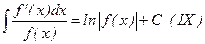 4) Если числитель подинтегральной функции является производной знаменателя, то интеграл равен логарифму знаменателя