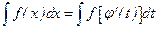 где x = φ (t) – дифференцируемая функция от t; причем x = φ (t) - строго монотонна для рассматриваемых значений переменной. В этом методе мы переменную х заменяем x = φ (t) dx = φ| (t) dt
