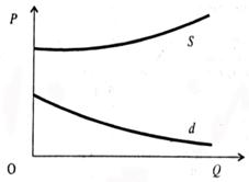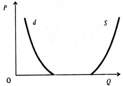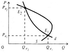 Рис. 25. Цена предложения превышает цену спроса Третий случай. Наличие двух точек пересечения кривых спроса и предложения (рис. 26).