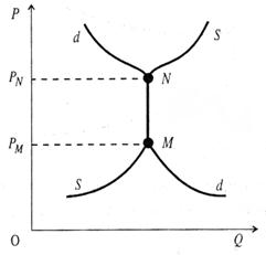 Совпадение линий спроса и предложений на вертикальном отрезке означает, что в каких-то пределах изменения цены не сказываются на равновесном объеме продаж (например, на рынке автомобилей и т. п.).