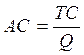 Средние общие затраты (АС – average costs или ATC) показывают общие затраты на единицу выпускаемой продукции соответствующего объема выпуска и определяются по следующей формуле: