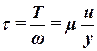 Касательные напряжения имеют размерность давления (Па). Тогда закон Ньютона внутреннего трения в жидкости запишется
