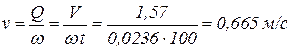 На участке между второй и третьей точками отбора расход равен: Q2-3 = Q3 = 0,02 = 0,02 м3/с. Тогда скорость на этом участке равна: