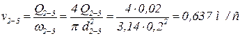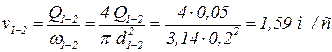 На участке между первой и второй точками отбора расход равен сумме расходов которые отбираются после этого участка: Q1-2 = Q2 + Q3 = 0,03 +0,02 = 0,05 м3/с. Тогда скорость на этом участке равна: