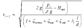 Задаемся начальным произвольным значением скорости в трубопроводе v0 с индексом i = 0;