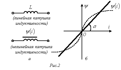 Нелинейные свойства катушки индуктивности (см. кривую