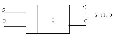 S (set) для установки триггера в единичное состояние (Q=1, Q^=0). R (reset) для установки триггера в нулевое состояние (Q=0, Q^=1). Для RS триггер с инверсными входами активный переключающий сигнал 0. То есть, если S=0, R=1, то триггер в единичном состоянии (Q=1, Q^=0) и наоборот, если S=1, R=0, то триггер в нулевом состоянии (Q=0, Q^=1) Асинхронный RS триггер с прямыми входами