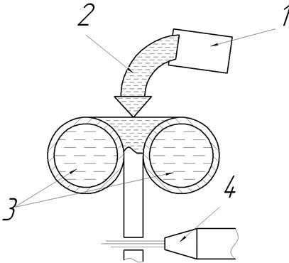 Установка для бесслитковой прокатки имеет следующие составляющие: 1) ковш с жидким металлом; 2) желоб; 3) валки для формирования потока жидкого металла, охлаждаемые водой; 4) резак, разделяющий поток металла на мерные длины. Внедрение бесслиткового проката упрощает и удешевляет процесс получения различных изделий - листов, полос, лент, проволоки и т.д., т.к. исключается отливка слитков в изложницах и заготовка готовится сразу к прокатке. 5.3 Волочение. Волочением называют процесс ОМД, при котором заготовка протаскивается через отверстие волоки, размеры которого меньше размеров сечения заготовки. В результате получается изделие с постоянным сечением по всей длине. Волочение применяют для получения проволоки диаметром 10…0,002мм, тонкостенных труб, фасонных профилей, а также для калибровки, то есть придания точных размеров и высокого качества поверхности изделия.