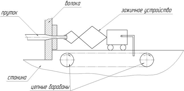 Рис. 5.5 Схема волочильного стана с прямолинейным движением