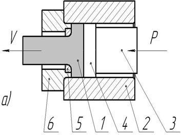 Рис 5.8 Прямой (а) и обратный (б) методы прессования