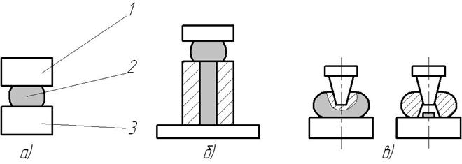 Рис. 5.9. Схемы осадки (а), высадки (б) и прошивки металла
