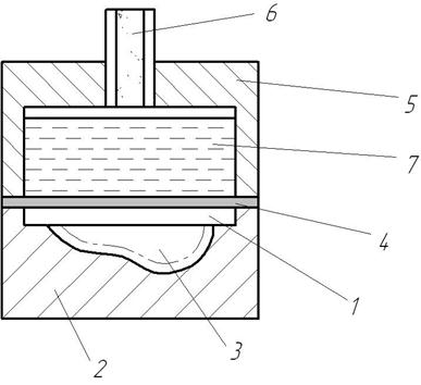 Листовую заготовку 1 устанавливают на матрицу 2 с полостью 3 через резиновую диафрагму 4. Накрывают крышкой 5 с пороховым зарядом 6. Крышку заполняют водой 7 и взрывают заряд. Ударная волна деформирует заготовку соответственно форме матрицы. Основные достоинства метода: не требуется использования сложного пуансона и сложного оборудования. Недостаток - относительно низкая производительность и высокая опасность при работе. 5.8.2 Раскатка.