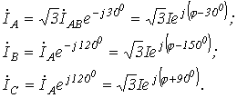 Комплексы линейных токов можно найти с использованием векторной диаграммы на рис. 2,б, из которой вытекает: