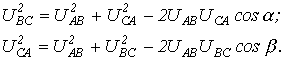 По найденным фазным токам приемника на основании первого закона Кирхгофа определяются линейные токи: