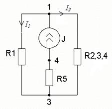 Простейшие цепи – это цепи с одним источником энергии и не очень сложной структурой, включающей либо последовательно, либо параллельно соединенные пассивные элементы. Примерный порядок расчета. 1. Выбирают положительное направление токов ветвей и нумеруют все узлы схемы. 2. Начиная с самого удаленного от источника участка цепи, находят эквивалентные сопротивления участков с последовательным или параллельным соединением элементов. Процесс продолжают до тех пор, пока не получится одноконтурная схема. 3. В полученной схеме находят либо неизвестный ток Iвх, либо неизвестное напряжение Uвх в зависимости от источника схемы. 4. Двигаясь в обратной последовательности, рассчитывают неизвестные токи и напряжения, используя закон Ома и первый закон Кирхгофа. 5. Проверку правильности расчета режима цепи проводят по балансу мощностей или законам Кирхгофа. Пример: Дано: