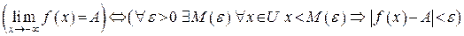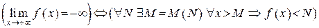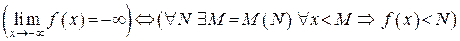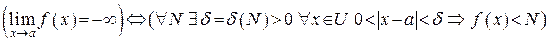Если функция является бесконечно большой при и при этом принимает только отрицательные значения, то будем говорить, что функция при имеет бесконечный предел и будем писать .