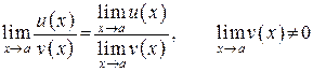 Теорема 5. Предел частного двух функций равен частному пределов этих функций при условии, что предел знаменателя нулевой: