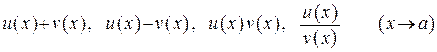 Рассмотрим функции, зависящие от одного и того же аргумента: и . Будем предполагать существования пределов этих функций при (здесь либо число, либо , либо ):