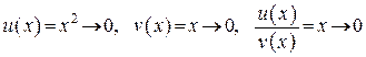 Рассмотрим частное и предположим, что обе функции и одновременно стремятся к нулю: и . Хотя нам известны пределы и , но о пределе их отношения , не зная самых этих функций, никакого утверждения мы сделать не можем. Подтверждением этого являются примеры: