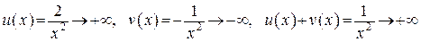 Рассмотрим сумму и разность . Предположим, что обе функции являются бесконечно большими функциями противоположных знаков, в случае суммы или бесконечно большими функциями одинаковых знаков, в случае разности.