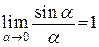 Первый замечательный предел. Имеет место предельное соотношение
