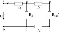 Затем находим эквивалентное сопротивление участка c-d и суммируем его с сопротивлением R1. Общее эквивалентное сопротивление равно: