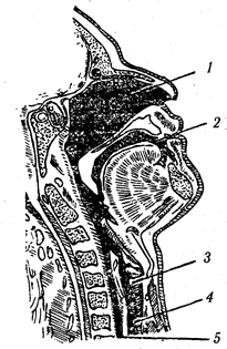 Кровяное давление создается силой сокращения желудочков сердца и упругостью стенок сосудов. Оно измеряется в плечевой артерии. Различают максимальное (или систолическое) давление, которое создается во время сокращения левого желудочка (систолы), и минимальное (или диастолическое) давление, которое отмечается во время расслабления левого желудочка (диастолы). Давление поддерживается за счет упругости стенок растянутой аорты и других крупных артерий. В норме у здорового человека в возрасте 18— 40 лет в покое кровяное давление равно 120/70 мм рт. ст. (120 мм систолическое давление, 70 мм — диастолическое). Наибольшая величина кровяного давления наблюдается в аорте. По мере удаления от сердца кровяное давление оказывается все ниже. Самое низкое давление наблюдается в венах при впадении их в правое предсердие. Постоянная разность давления обеспечивает непрерывный ток крови по кровеносньм сосудам (в сторону пониженного давления). Дыхателная система Дыхательная система включает в себя носовую полость, гортань, трахею, бронхи и легкие. В процессе дыхания из атмосферного воздуха через альвеолы легких в организм постоянно поступает кислород, а из организма выделяется углекислый газ (рис. 2.10 и 2.11). Трахея в нижней своей части делится на два бронха, каждый из которых, входя в легкие, древовидно разветвляется. Конечные мельчайшие разветвления бронхов (бронхиолы) переходят в закрытые альвеолярные годы, в стенках которых имеется большое количество шаровидных образований — легочных пузырьков (альвеол). Каждая альвеола окружена густой сетью капилляров. Общая поверхность всех легочных пузырьков очень велика, она в 50 раз превышает поверхность кожи человека и составляет более 100 м2.