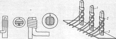 Рис. 11 Количество витков накручиваемого провода обычно не превышает шести. Концентрация напряжения в точках контактирования оценивается средним давлением около 17-103 Па. Для повышения надежности к виткам из неизолированного провода добавляют один-два витка провода с изоляцией, что практически в два раза повышает общую надежность соединения.