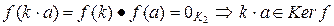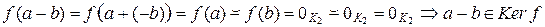 Ker f Í K1 и Ker f ¹ Æ, так как Ker f по свойству 3. Для " a, b Î Ker f. Далее, для " a Î Ker f, " k Î K1 выполняется , . Итак,