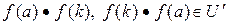 Пусть теперь U – произвольный идеал кольца (K, +, ×), соответственно левый, правый, двусторонний. Рассмотрим образ идеала U при отображении f – . Тогда для , выполняются следующие свойства: