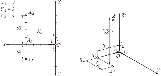 Построение изображений плоских многоугольников сводится к построению аксонометрических проекций их вершин, которые соединяют между собой прямыми линиями. В виде примера рассмотрим построение пятиугольника, изображенного на pис. 13.4.