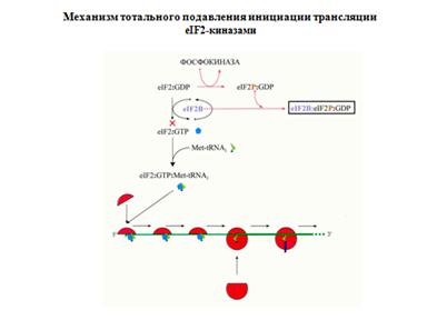 2В призван заменять ГДФ на ГТФ во втором факторе. Он туда садится, привлекает ГТФ. Если 2В фосфорилирован (сер51, это происходит при недостатке железа, тепл. шоке, голодании, внутренней инфекции), то комплекс с ГТФ не распадается. Вся активность фактора второго - связана в нераспадающемся комплексе (красная полоска поперек стрелки).