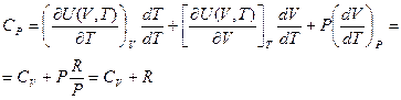 Нескінченно малий приріст функції Н – повний диференціал. Тому Н – функція стану т.-д. с. Вона має назву – ентальпія. 6. Співвідношення між СР та СV для ідеального газу