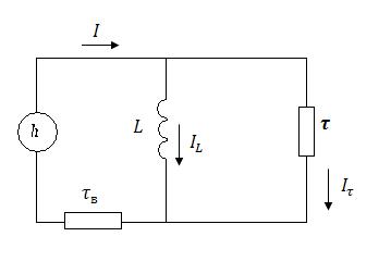 (где L – индуктивность, Приведем схему работы управляющего источника на нагрузку, обладающую ригидностью L и сопротивлением 𝝉: