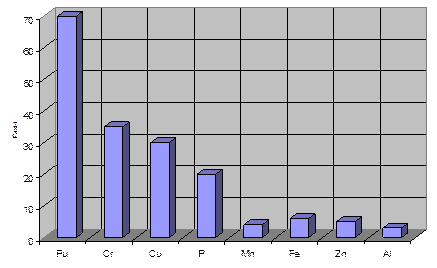 Летучие неорганические компоненты сгорания тяжелых фракций нефти Красноярского края судя по данным исследования её микрокомпонентного состава могут содержать хром, мышьяк, цинк, никель, медь и их соединения. Большинство из них (мышьяк, никель, хром и их соединения) концерогенные. Перечисленные пять элементов и их соединения плохо перерабатываются природой и пагубно влияют на все живые организмы. Например, при высоких содержаниях свинца гибнет почвенная микрофлора и поражаются дыхательные пути человека. Сжигание нефтей и веществ загрязненных нефтью способствуют загрязнению биосферы изотопами Sr89, S90 (Безпалый, 1992.) При температурах термической переработки нефти сера, дегидрируя УВ, образует H2S. Сульфиды и дисульфиды при этом распадаются, также образуя H2S. Остаточная сера объединяет те соединения, которые при температурах переработки нефти не вступают в реакции. Отсюда следует, что H2S при термической переработке образуется тем больше, чем меньше в ней остаточной серы.