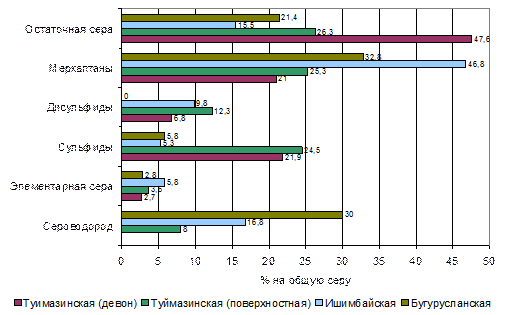 Рис. 17.8. Удельный вес различных сернистых соединений нефти (в % по отношению к общей сере, принятой за 100% (Никитин, 1980) Некоторые химические производства кроме газов поставляют в среду многие микроэлементы: коксохимия - Hg - n.1000 КК; производство лакокрасочных изделий - Hg, Cd - n.1000-n.10000КК; синтетического каучука - Сr - n.100. С заводами по производству фосфорных удобрений связаны высокие уровни загрязнения Р, редкими землями, Sr, F; азотных удобрений - соединениями N и т.д. Целлюлозно-бумажные комбинаты. Они требуют много воды, и со стоками поступают сероводород, фенолы и другие органические загрязнители, представляющие серьезную экологическую опасность для водоемов. Гидрометаллургические заводы (ГМЗ). Независимо от применяемой технологии основными источниками загрязнения природной среды остаются сбросовые воды гидрометаллургических процессов, емкости подготовки сырого рассола, устройства для промывки сорбента (в случае применения сорбционных технологий), склады химических реагентов и готовой продукции, погрузо-разгрузочные площадки, нагнетательные скважины, электро- и теплоагрегаты, жилищно-бытовой комплекс. По предварительным оценкам рассолов региона состав стоков при применении известных сорбционных и изотермических технологий ожидается в расчете на средне статистический рассол следующим: на магниево-литиевом цикле (переделе), г\дм3: лития хлорид - 0.026, натрия хлорид - 120.5, кальция хлорид - 210,5, стронция хлорид - 2.7, калия хлорид - 28.3, бром - 3.6, растворитель технический; на кальций бромном производстве, мг/дм3: бром - 380-680, трибутилофосфат меньше 0.01, растворитель экстракционный деароматизированный - меньше - 0.05. ПДК по органическим растворителям и ТБФ - 0.02 мг/дм3 . Стройиндустрия. В целом она отличается меньшими концентрациями в отходах химических элементов. Среди предприятий значительной техногенной нагрузкой на среду выделяются цементная промышленность, производство огнеупорного кирпича и теплоизоляционных изделий, в пыли которых содержание Sb, Pb, Ag, иногда Hf и Hg достигает сотен КК. Ядохимикаты. Они широко применяются в сельском хозяйстве, лесной "орандж эйджент"). Коммунально-бытовые отходы (бытовой мусор, канализационные осадки, илы городских очистных сооружений). По степени концентрации и комплексу химических элементов-загрязнителей они не уступают промышленным отходам. Особенно высоки концентрации химических элементов в выбросах мусоросжигательных заводов, являющихся вторичными источниками загрязнения в городах. По Саету и др., концентрация Ag, Pb, Cd, Sn в пыли с электрофильтров одного из таких заводов составляет более 100 КК, Pb, Zn, Sb, Cr - от 100 до 500 КК. Эти и аналогичные образования можно рассматривать в качестве техногенных руд. Свалки также являются вторичными источниками загрязнения. На некоторых из них за многие годы накопилось много разнообразных бытовых, а иногда и промышленных отходов. Грунты свалок и высачивающийся из толщи отходов фильтрат обогащены в десятки и сотни раз по сравнению с фоновыми почвами Zn, Си, Sn, Ag, Pb, Cr и другими элементами. Развевание материала свалок и просачивание стоков ведет к загрязнению окружающих почв, поверхностных и подземных вод. Нередко свалки расположены в черте города и создают для него опасность, особенно в результате их спонтанного возгорания. Осадки сточных вод городской канализации накап