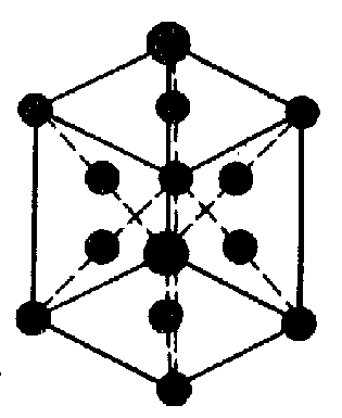 Рис. 27.3. Схема розташувань атомних центрів у ГЦК ґратках