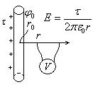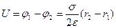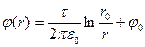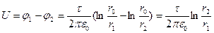 Разность потенциалов U (рис.2.17) двух точек на силовой линии поля заряженной нити: