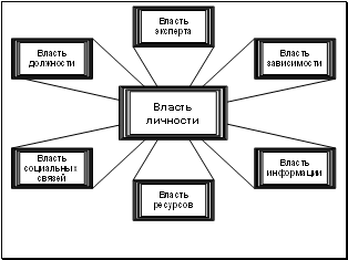 В системе межличностных отношений человек, на чью долю выпадает роль официального руководителя для группы людей, получает право на власть и определённые полномочия. Власть – явление многогранное. Будучи общественным явлением, власть обладает всеобщностью и проникает во все виды деятельности и сферы общественных отношений. Власть связывает людей и общественные группы, направляя их действия как для реализации власти, так и для противопоставления ей. Власть подчиняется объективным законам, не зависит от человеческих представлений и стремлений, определяет и регулирует процессы социального развития. Универсальные свойства власти: всеобщность, функционирование во всех сферах общественных отношений, способность проникать во все виды деятельности, способность связывать людей, общественные группы и противопоставлять их. Власть как общественное явление реализуется в разных формах: руководства, управления, координации, организации, контроля, господства. Различны также и средства осуществления власти: право, авторитет, убеждение, традиции, манипуляция, принуждение, насилие. Решающую роль играют экономические факторы.