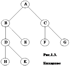 1.2. “Прошитые” деревья Можно несколько сэкономить память компьютера за счет применения так называемых “прошитых” деревьев. В “прошитых” деревьях концевые связи-указатели используются для связи с родителями, такие связи назвали нитями. А для того чтобы отличать нормальные связи от нитей, в каждом узле хранят две однобитовые переменные LTag и RTag. Эти переменные равны нулю, если соответствующие связи указывают на поддеревья, и единице, если связи являются нитями. Левая нить каждого узла указывает на узел, являющийся предшественником данного при центрированном обходе, правая - на узел, являющийся последователем данного узла. При работе с древовидными структурами часто приходится решать задачу обхода дерева. Это - способ методичного исследования узлов дерева, при котором каждый узел проходится точно один раз. Для этого удобно использовать, например, такой рекурсивный алгоритм: 1. Корень дерева. 2. Если нет поддеревьев, то ВЫХОД, иначе обходим все поддеревья слева направо.