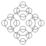Рис. 3.1. Рисунок из окружностей Центральная окружность радиуса R, на этой окружности симметрично располагаются 4 окружности радиуса R /2 каждая. На каждой из этих 4 окружностях аналогичным образом строятся еще 4, и т.д. Рисование прекращается, если радиус последних становится меньше некоторого числа k. Рисование окружностей будем производить относительно центральной окружности с центром (x,y). Центр первой окружности - (x+R,y), второй - (x,y+R), третьей - (x-R,y), четвертой - (x,y-R). Решение: uses crt,graph;var gd,gm,mx,my:integer; ch:char;procedure krug(x,y,r:integer);begin if r>k then begin krug(x+r,y,r div 2); krug(x,y+r,r div 2); krug(x-r,y,r div 2); krug(x,y-r,r div 2); end; circle(x,y,r);end;Procedure Init; {инициализация графического режима}var err: integer;begin DetectGraph(gd,gm); InitGraph(gd,gm,' путь драйвера'); if GraphResult<>grok then begin Writeln(GraphErrorMsg(err)); Readln; Halt(1); end;endBEGIN Init; krug(getmaxX div 2, getmaxY div 2, getmaxY div 4);END.
