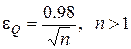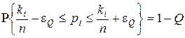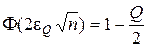 де Q - рівень значущості (будь-яке наближене до нуля додатне число). Визначення максимальної похибки e Q при заданому рівні значущості Q здійснюється із співвідношення