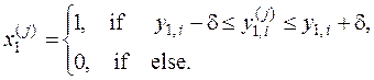 При оптимізації процесу навчання ІС за ІЕІ-технологією важливим питанням є визначення системи нормованих допусків (СНД), яка задає області значень відповідних контрольних допусків на ознаки розпізнавання. Визначення 2.5.1. Нормованим називається поле допусків Визначення 2.5.2. Контрольним називається поле допусків У методах ІЕІ-технології контрольні допуски на ознаки розпізнавання вводяться з метою: · рандомізації процесу прийняття рішень, оскільки для повного дослідження процесу необхідно використовувати як детерміновані, так і статистичні характеристики; · трансформації у процесі навчання ІС параметрів розподілу реалізацій образу шляхом допустимих перетворень в дискретному просторі ознак розпізнавання. Зрозуміло, що · збереження випадковості координат векторів-реалізацій образу; · недопущення збігу еталонних векторів, які є центрами відповідних контейнерів класів розпізнавання, що може призвести до невиконання умов (2.2.2) або (2.2.4) розбиття простору ознак. Відомі методи оцінки випадковості реалізацій образу обумовлюють наявність навчальної вибірки великого обсягу, що не завжди є здійсненним на практиці. Один із шляхів вирішення цієї проблеми ґрунтується на такій гіпотезі: чим більша середня кодова відстань між реалізаціями одного образу, тим більше вони будуть мати відмінних ознак розпізнавання, що свідчить про їх випадковість. Розглянемо постановку задачі оптимізації СНД за дистанційно-максимальним критерієм. Нехай