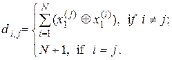 де Надалі, з метою спрощення, кодова відстань (2.2.2), наприклад, між векторами За ІЕІ-технологією відновлення оптимального контейнера в радіальному базисі, наприклад,