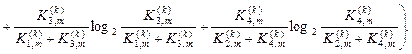 де Після підстановки відповідних позначень (2.7.7) у вираз (2.7.4) одержимо робочу формулу для обчислення в рамках ІЕІ-технології ентропійного інформаційного КФЕ навчання ІС розпізнаванню реалізацій класу